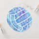 Esse convite de festas giro de voleibol tem tema azul com destaque turquesa e roxo e mostra a imagem contornada de um simples voleibol - um delicado padrão de rabiscos, flores e penas em cobrir brancos - todos menos um dos painéis texturizados do voleibol - personaliza com seus detalhes de celebração - de katz_d_zynes