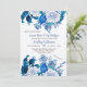 Convite Flores de Rosa Branca em Papel-Padrão Azul