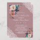 Design com um delicado azul empoeirado, rosa poeirado, buquês florais de cor d'água, um divisor floral, cantos de renda, sobre um fundo rosa poeirento. Sendo um modelo, é fácil adicionar suas informações, mudar fontes, cores. Para obter itens correspondentes, visite minha Coleção de Flores de Rosa Dusty.
