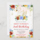 Cisne Elegante Aquoso com Flores de Verão vermelhas, azuis e amarelas, bordas douradas e confete dourado com fundo de faixas azuis