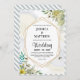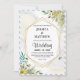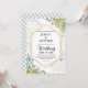 Convite elegante e simples com flores de verão, e rosas amarelas em uma moldura dourada. Abelhas como detalhe decorativo. Fundo de aquarela com manchas de cinza claro e branco, e nas bordas listras diagonais cinzas