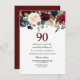 Flores de Borgonha de Vinho Vermelho 90 Aniversário Convidam belos e elegantes design de aquarela floral Totalmente Personalizáveis / personalizados