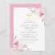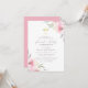 Um elegante design com flores cor-de-água rosa nos cantos superior direito e inferior esquerdo do convite. Seus detalhes personalizados da Santa Comunhão aparecem no meio de uma bela tipografia de roteiro. Essas placas se invertem a uma cor rosa.