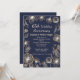 Convite Flores douradas em azul 65º Aniversário de Casamen