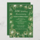 Flores cintilantes douradas em convite de festa de 30º aniversário de casamento em fundo verde esmeralda