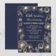 Flores douradas cintilantes em fundo azul meia-noite Convite de Aniversário de 65 Anos de Casamento