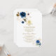 Design de cartão elegante com cor d'água, flores azuis delicadas e ouro falso esboçado, flores esboçadas, chalice e cruz douradas; no verso, as mesmas flores e cruz dourada sobre fundo branco. Use a ferramenta Personalizar para adicionar suas informações. Para encontrar itens, por favor, visite minha Santa Coleção de Comunhão.