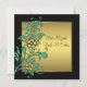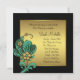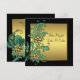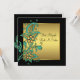 Convite Flores Douradas Verde-azulado Bat Mitzvah Preto e