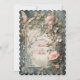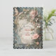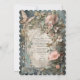 Um belo convite de casamento vitoriano em aquarela com flores e borboletas cor-de-rosa e azuis.
