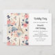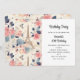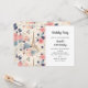 Um convite de aniversário com um adorável padrão temático francês. Flores bonito, torre Eiffel e borboletas. As cores incluem rosa, azul, pêssego e creme.