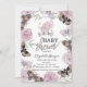 Convite Flores Elefantes Borboletas Chá de fraldas Rosa