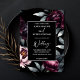 Modelo de convite de casamento editável e digital para download instantâneo, flores burgundy elegantes e góticas escuras em tudo-em-um, peônias pretas e burgundy em fundo escuro (não é 100% preto, caso precise de algo para combinar com 010102) convite de casamento com detalhes do casamento e código QR de RSVP no verso