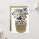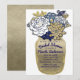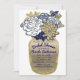Convites de Noiva Florais Azul Rústico Dourado Flores em Pote de Pedra