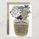 Convites de Noiva Flores em Pote de Pedra Rústico Azul Dourado Floral