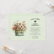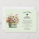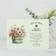 Convite de festa de formatura com um vaso de flores caprichoso e elegante. Cores verde, rosa e creme. Conjunto em um vaso verde com um pano xadrez. Estilo vintage desgastado.