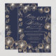 Convite de Aniversário de Bodas de 60 anos com flores exóticas estilizadas cintilantes douradas em um fundo azul meia-noite. Você pode ajustar o texto de acordo com a sua necessidade. A cor do fundo pode ser alterada.