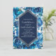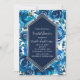 Convite Flores Florais Azul Índigo Elegante Chá de Noiva