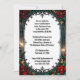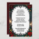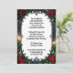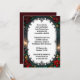 Flores vermelhas escuras com sotaques dourados e velas queimadas rodeiam um quadro preto e gótico neste belo convite para festas de férias.