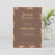 Apresentando nosso Chá de panela Rustic Bloom, uma fusão impressionante de elegância moderna e charme rústico. Este convite apresenta um fundo castanho-quente adornado com uma fronteira encantadora de delicadas flores de laranja e verde-peluche, criando uma composição harmoniosa e visualmente marcante. O tom marrom-terra, aliado aos tons vivos e alegres de laranja, evoca uma sensação de sofisticação rústica. A interação dessas cores adiciona profundidade ao design, aprimorando a beleza dos elementos florais delicados. Contra a canvas marrom rústica, a borda das flores laranja e verde forma uma armação pitoresca, lembrando um prado beijado pelo sol na floração do cheio. Este convite é mais do que apenas um pedaço de papelaria; é uma celebração visual do amor e do eterno da natureza. O pano de fundo castanho, enfeitado com a intrincada fronteira das flores cor de laranja e verde-escuras, convida convidados para um mundo de encanto contemporâneo e a promessa de novos começos. Ele dá o tom perfeito para um chá de panela cheio de risos, momentos queridos, e a antecipação de uma bela jornada juntos. Abrace a beleza rústica e anote seu chá de panela em estilo com nosso Chá de panela Rustic Bloom. Não é apenas um convite; é um tributo radiante ao amor e à elegância sem esforço dos momentos mais preciosos da vida. Peça agora e deixe seus convites trazerem um toque de charme natural para sua celebração, prometendo um dia cheio de amor, alegria e surpresas deliciosas.