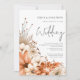 Floricultura de Outono Moderna Código QR de Letra de Casamento. Adicione o seu código QR ao site do seu casamento no verso, o que torna esta uma opção conveniente para os seus convidados responderem e verem todos os detalhes sem a necessidade de cartões separados de RSVP e detalhes. Um conjunto de letras manuscritas para o casamento e o resto do texto pode ser facilmente personalizado. Florais de cores de outono em terracota, marrom e creme descem pelo lado esquerdo e atravessam a parte inferior e também estão no verso.