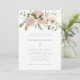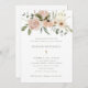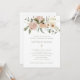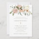 Este simples e elegante convite da Primeira Comunhão apresenta um buquê rústico de flores aquáticas e verde em tons neutros de pessegueiro e marfim, com texto verde e uma cruz falsa de ouro.