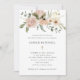 Este simples e elegante convite da Primeira Comunhão apresenta um buquê rústico de flores aquáticas e verde em tons neutros de pessegueiro e marfim, com texto escuro e uma cruz falsa de ouro.