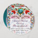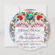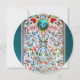 Elegante, design floral clássico com tulipas vermelhas, cravos, teal, flores azuis aqua, flores primavera, espirais, flores elaboradas a partir dos motifs turcos do século XVIII e da brilhante pedra gema do aquamarine 3D de Búlgaro Lumini (c). Fácil de personalizar com suas iniciais e seu próprio texto como um cartão de casamento, guarde a data, cartões de chá de panela, , doces 16 aniversários, festas, chás de noivado de aniversário, ou qualquer evento que você desejar!