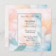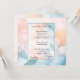 Um convite de casamento elegante e lindo e produtos correspondentes feitos em um fundo de duas camadas de flores em aquarela pastel.