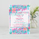 Este convite de aniversário elegante, moderno e artístico é perfeito para o seu dia especial. Apresenta uma cor d'água rosa rosa, púrpura, rosa com punho, verde-rosa, e flores verdes aqua, pintadas manualmente, e deixa arranjos sobre um simples fundo cor-de-rosa pincelado com uma borda colorida. É bonito, único, artístico e fofo; perfeito para um exterior, qualquer estação, quintal, ou mesmo um evento formal. ***NOTA DE DESIGN IMPORTANTE: Para qualquer solicitação de design personalizada, como solicitações de correspondência de produtos, alterações de cor, mudanças de posicionamento ou qualquer outra solicitação de alteração, clique no botão "CONTACT" ou envie um e-mail ao designer diretamente em lafemme.art@gmail.com. Você pode até enviar um e-mail para ela solicitando um design completamente personalizado e novo.