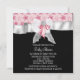 Flores rosas e pretas adoráveis com arco de de diamante princesa chá de fraldas convidada modelo. Este convite para chás de fraldas cor-de-rosa e preto bonito é facilmente personalizado para o seu evento, simplesmente escolhendo o botão "Personalizar!" para começar a adicionar detalhes do evento, estilo de fonte, tamanho de fonte e cor e texto. Observe que todos os adesivos, cartões e designs de convite que você encontrará no Zazzle são gráficos impressos sem joias reais, arcos, levantados, gravados, ou peças ou peças adicionadas.