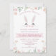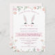 Flores Brancas Rosa Queirosas Um coelho da Garota do primeiro aniversario Coelhinho encara o primeiro convite de aniversário com alguns adoráveis arranjos florais de flor silvestre, faixa cor-de-rosa e um rosto coelho. Este primeiro Convite de Aniversário de alguns coelhos também apresenta alguns pontos falsos de brilho dourado e é completamente editável o design fazer adequado para qualquer idade.