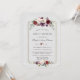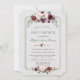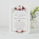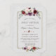 Desenho moderno e elegante com flores em aquarela cor de ameixa borgonha, um quadro dourado falso, divisor floral, em um fundo branco texturizado; no verso, buquê floral e o mesmo fundo. Itens correspondentes podem ser encontrados na minha Coleção Floral Real de Borgonha Dourada.