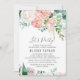 Este convite de flores românticas de peônia é perfeito para um evento elegante. O design floral apresenta flores em aquarela em tons de rosa claro, pêssego e branco.