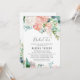 Esta carta de convite para chá de noiva romântica com flores de peônia é perfeita para um chá de panela elegante. O design floral apresenta flores cor-de-água, cor-de-rosa-claro, cor de pêssego e branca em cascata.