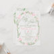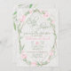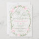 Moldura geométrica do estilo de terrário em ouro cercada por flores cor-de-rosa pastel e verde-aquarela em um fundo de casca de ovo texturizado com texto tipográfico "Chá de fraldas" e estilo complementar que você personaliza facilmente - Chá de fraldas de garota convite para novas mães ou casais - design © WhimsicalArtwork™