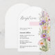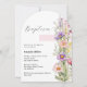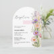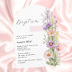 Um fundo branco, com uma grande cruz rosa decorada com flores rosa e roxo. Personalize e adicione o nome e detalhes detalhes.