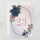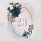 Cartão único de número de tabela com flores rosa românticas e marinhos e folhas verdes quadro geométrico botânico. PARA MAIS PRODUTOS CORRESPONDENTES, clique na coleção acima ou entre em contato comigo.