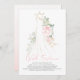 Flores cor-de-rosa macio e convites de chá de panela para vestidos de casamento
