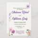 Este elegante convite para o casamento apresenta um fundo branco adornado com flores roxas e cor-de-rosa, complementado por folhas verdes exuberantes. Perfeito por adicionar um toque de romance e sofisticação ao seu dia especial.
