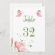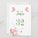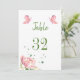 romântica, romântica, flores rosa-quente e folhas verdes com algumas belas borboletas número da mesa de casamento