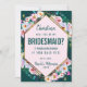 Moderno, elegante e feminino, com flores e folhas de água-forte cor-de-rosa impressas em falso dourado em um fundo esmeralda jade verde, "Você quer ser minha Dama de Honra?". Convites para Damas de Honra. Este design clássico e sofisticado é perfeito para a noiva moderna e elegante que deseja fazer com que sua Dama de Honra se sinta especial e amada. Personalize com sua própria mensagem na frente, bem como um monograma inicial personalizado no verso. Todos os desenhos são impressos em foto.