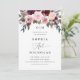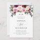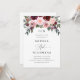 Chamada floral delicada de cor aquática com flores de rosa maroon cor-de-rosa para o casamento de jardim botânico. Detalhes com foto + código QR no verso.