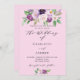 Um fundo rosa. Decorado com flores e folhagens em aquarela roxa. Personalize e adicione seus nomes e detalhes da festa.