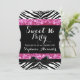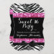 Ela só tem uma chance de ter dezesseis anos! Adorável convite à forma com impressão química. Celebre a festa de aniversário de mocinha em estilo com este convite a impressão branco e preto-e-zebra. Impressão de aspecto brilhante, cor-de-rosa, fresco, contrastado por um preto e branco selvagem com uma legal impressão zebra.
