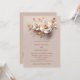 Flores escamosas tridimensionais e folhas de ouro rosa com sombras. Com sua foto e um código qr digitalizável para seu site de casamento na parte de trás.