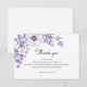 Convite Flores roxas agradecem. Nota de casamento botânico