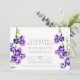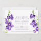 Bonito cor de água botânica da flor do céu brasileiro duranta flores roxas à noite, recepção de ensaio antes do casamento. Lindos convites ideais para um janto temático botânico roxo ou jardim tropical. © A pintura a aquarela original e design por Sarah Trett www.sarahtrett.com para www.mylittleedenweddings.com