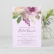 Estes adoráveis convites para brunch bridal apresentam um buquê floral de cor d'água roxa com muitas folhas verdes em um fundo de lavanda macia. Escrita manual roxa e texto moderno combinam-se para uma aparência simples e elegante.