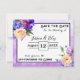Salve a data Bonito flores roxas elegantes cartões de casamento.