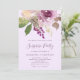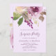 Estas adoráveis convites de festas surpreendentes apresentam um buquê floral de cor d'água roxa com muitas folhas verdes sobre um fundo de lavanda macia. Escrita manual roxa e texto moderno combinam-se para uma aparência simples e elegante.